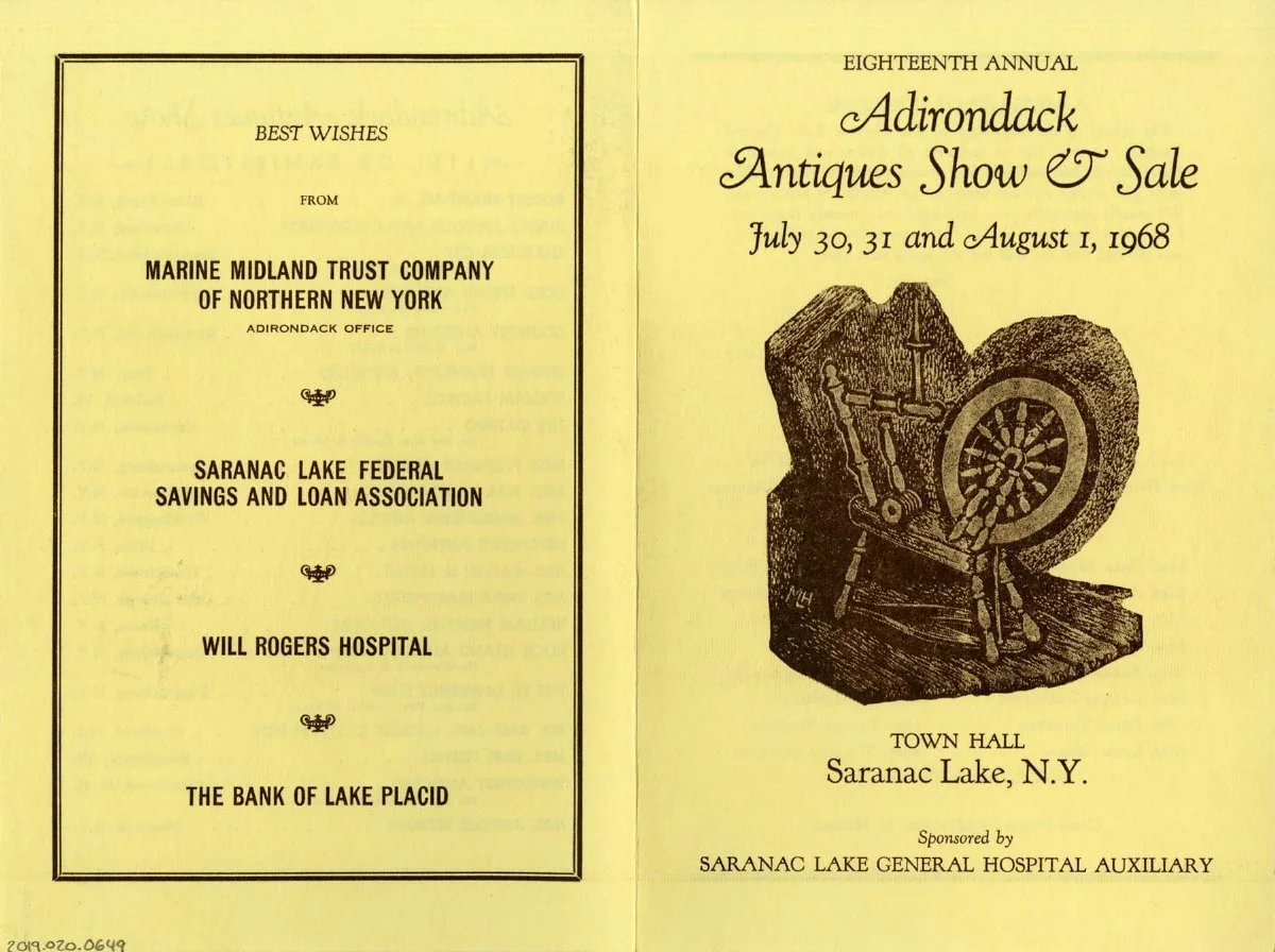 The Saranac Lake Antique Show was first held in 1950 and was hosted by the Saranac Lake General Hospital Auxilliary. It ran for many years at the Town Hall.